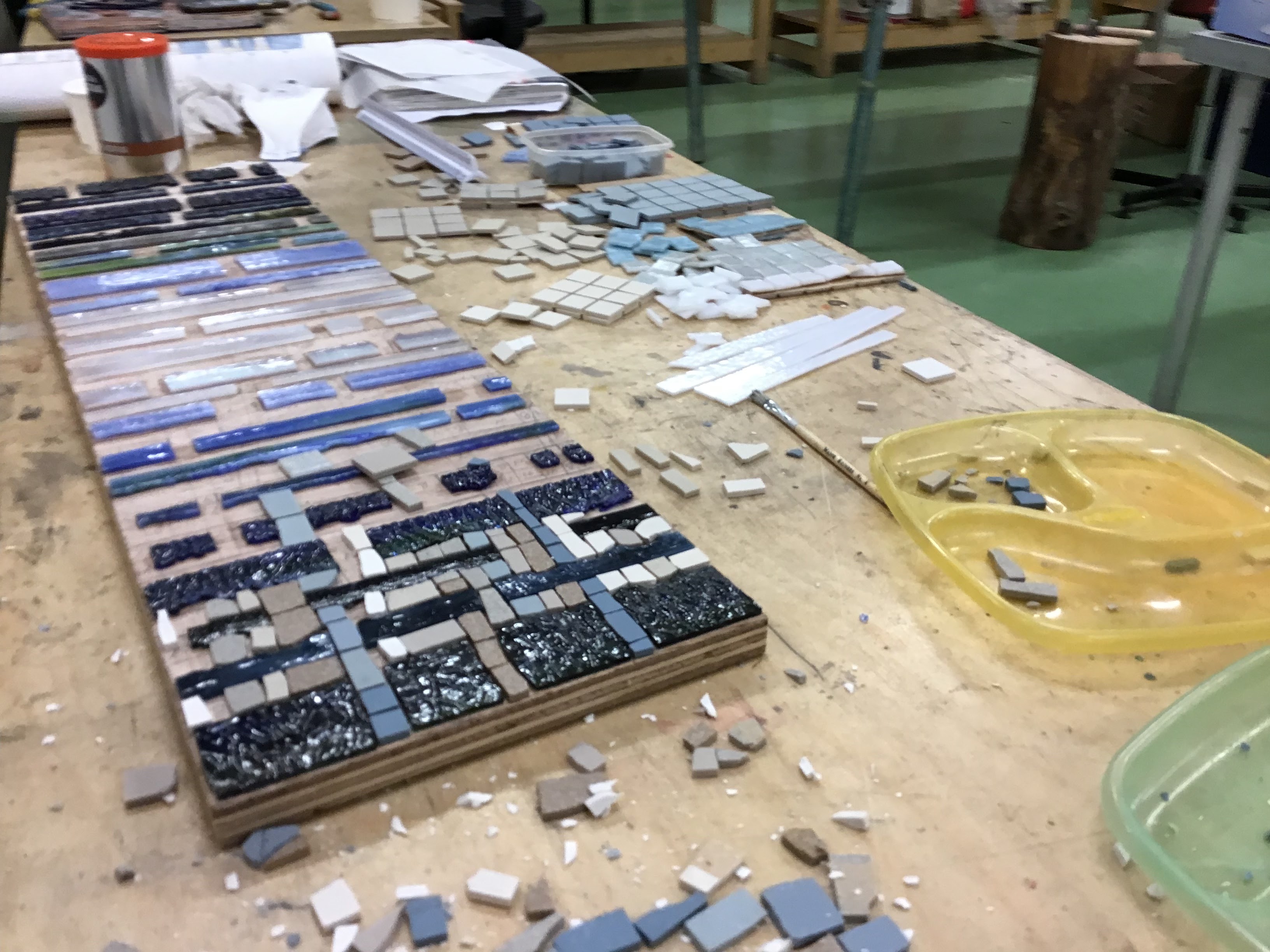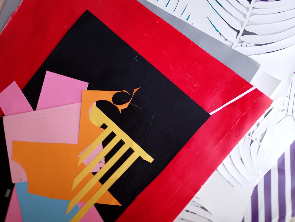 Pattern, shape and rhythm spark ideas for my art in both mosaic and paper. I prefer to use simple tools such as scissors, a scalpel, nippers and manual glass-cutters. This enables me to feel more part of the process, more at one with what is evolving. It means that each artwork becomes a one-off and is never replicated. Step by step I follow in the direction that the work seems to be guiding me. Laser-cutters have their place and I have used them in the past but for me there is more of a relationship involved and therefore more fun when a piece is organically-made, manually handled from start to finish. Also it enables you to connect with me closely when you see the end design. I show my human-ness, my vulnerability when you see the inevitable imperfections and apparent flaws.