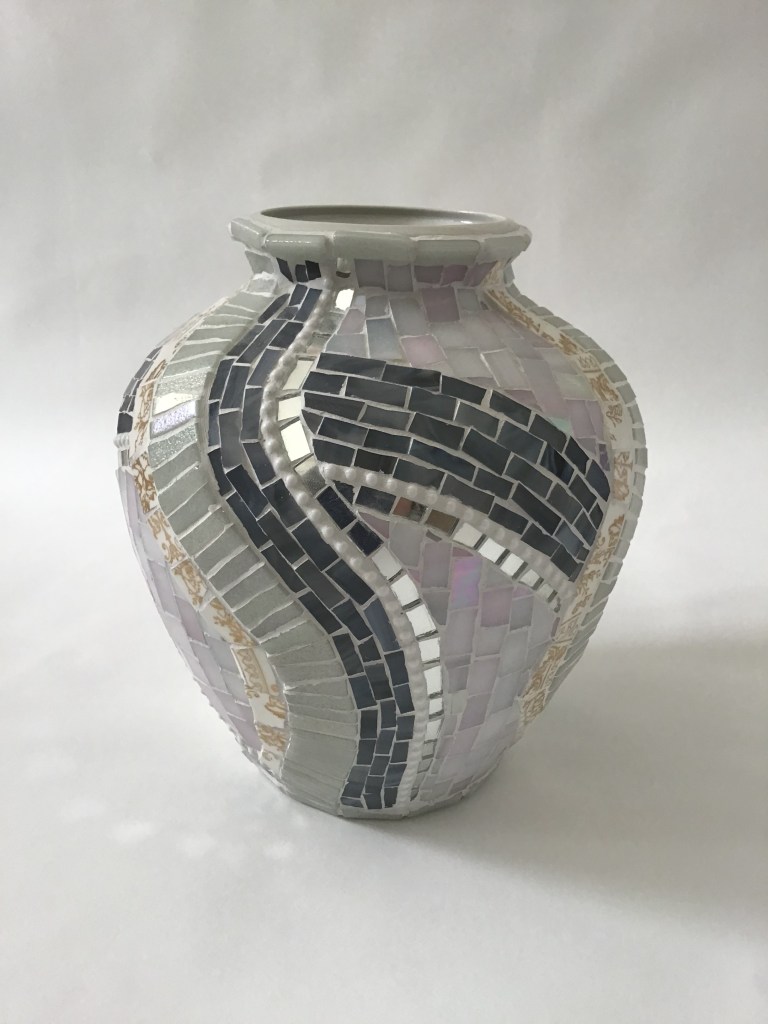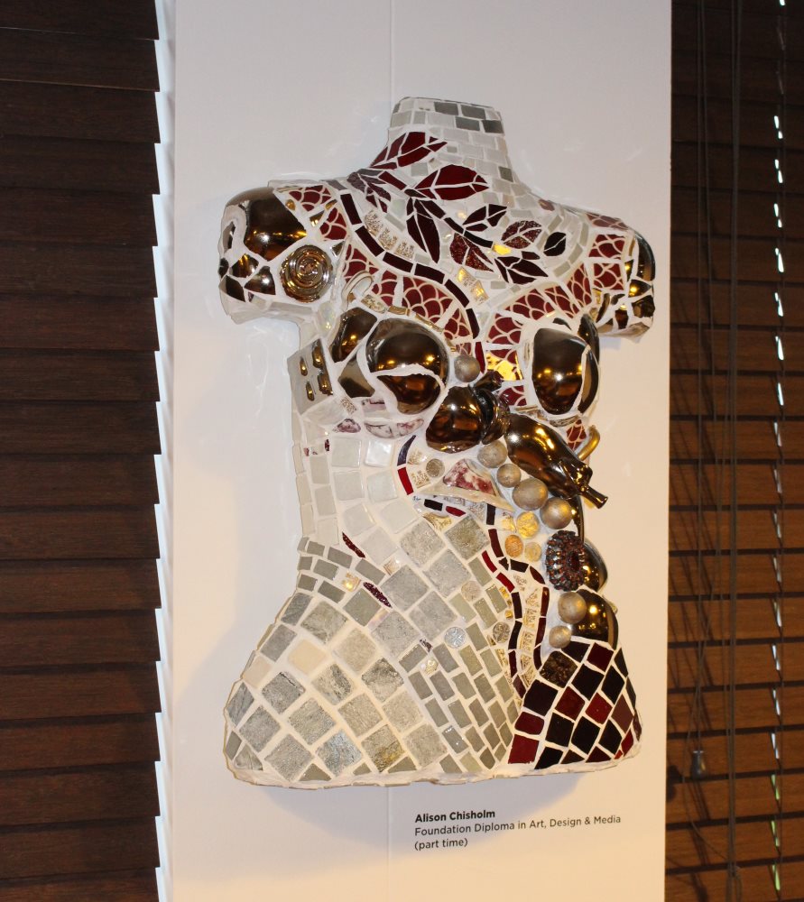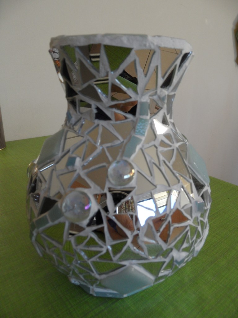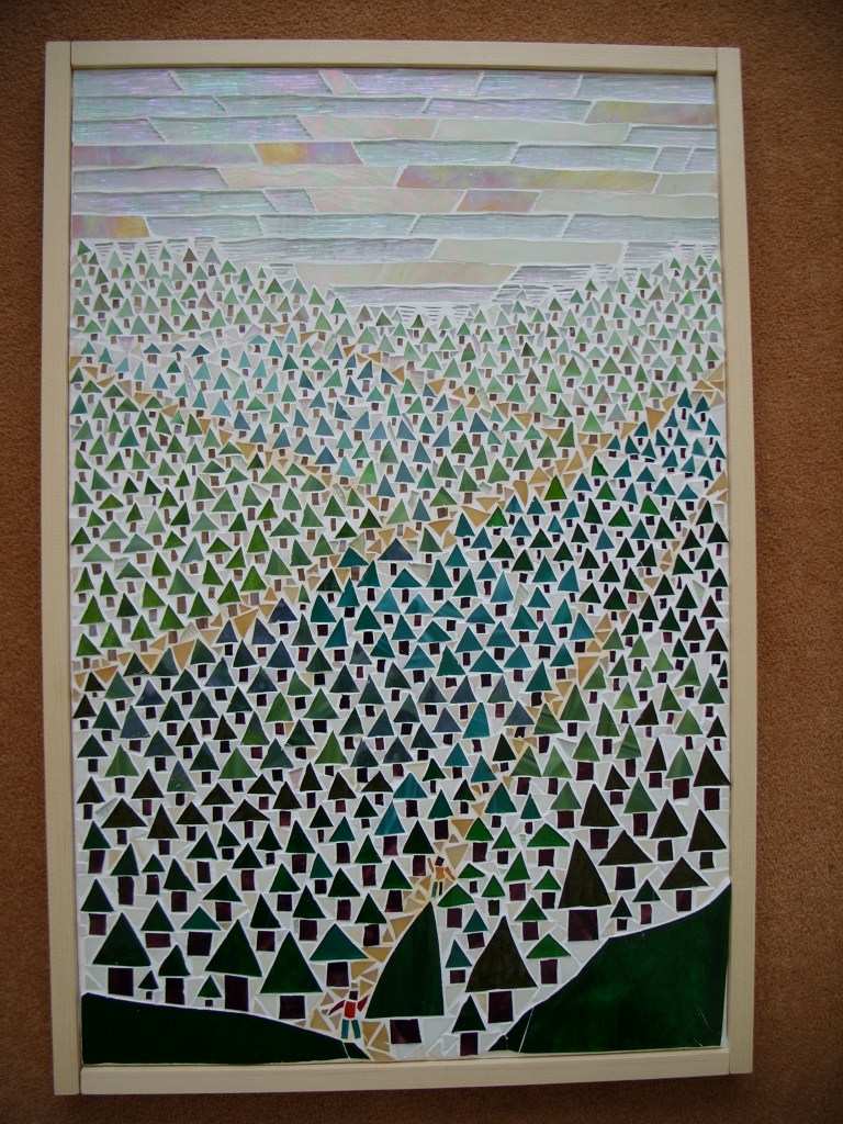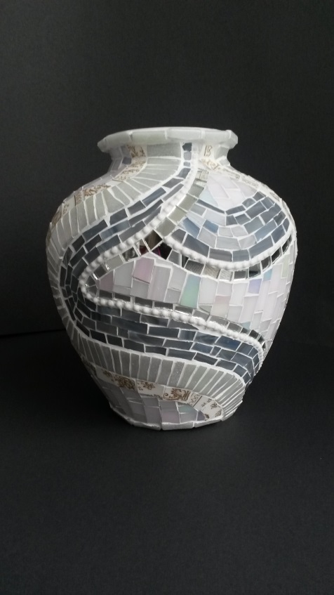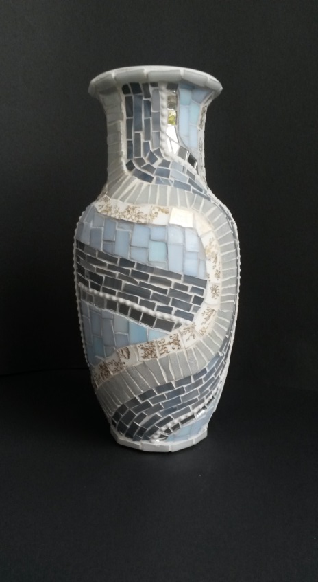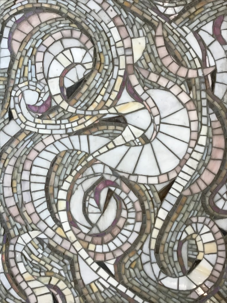 It was the fragility of paper that made me look for something more enduring and permanent, which I found in mosaic. I wanted something which would stand the test of time to contrast with paper’s delicacy. I love assembling a new creation, especially when I find a piece of beautiful stained glass or a lovely broken treasure. Rather like doing a jigsaw, it’s very relaxing. Sometimes I incorporate unusual or discarded objects which have stories of their own to tell, making an appeal about valuing the overlooked and forgotten.
